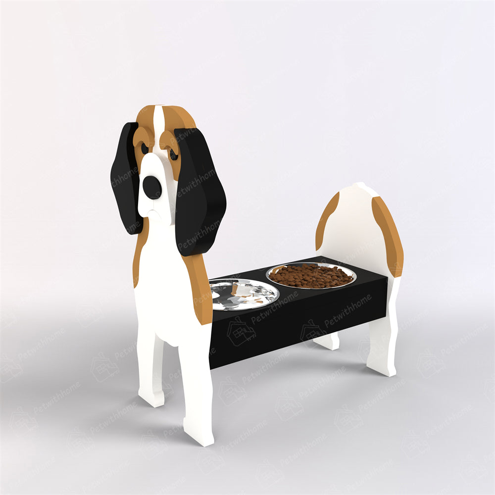 Introducing our charming and functional Pet Food Bowl Holder.Designed not only to make mealtime more comfortable for your furry friend but also to add a touch of whimsy to your home decor. This Pet Food Bowl Holder features a delightful dog silhouette, complete with expressive features that are sure to bring a smile to your face with each feeding.