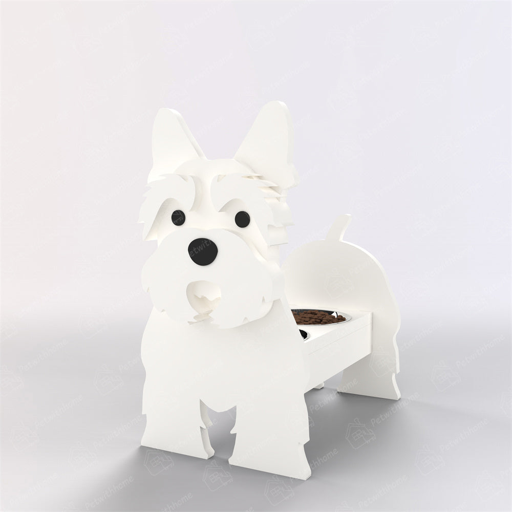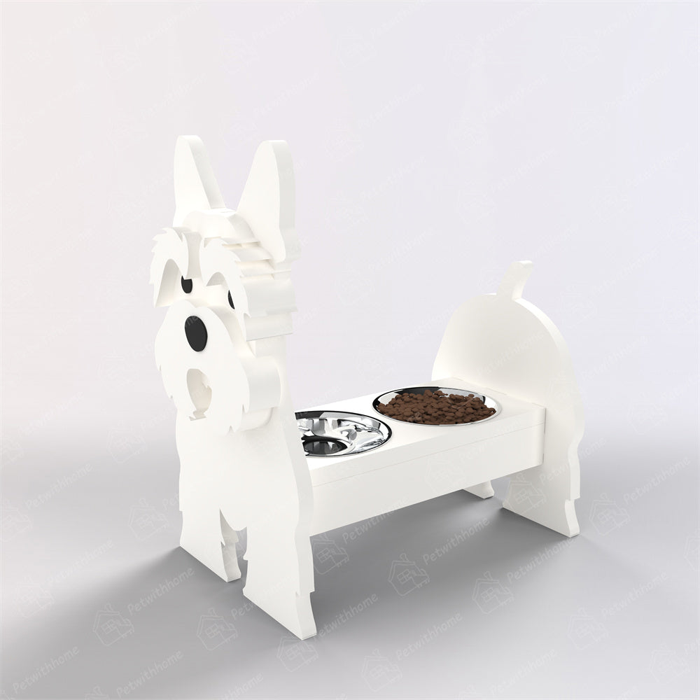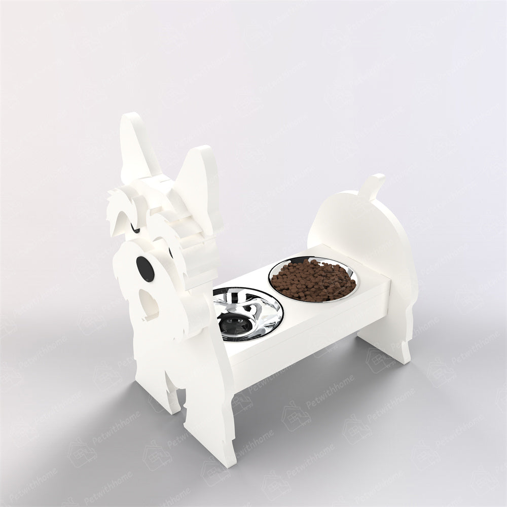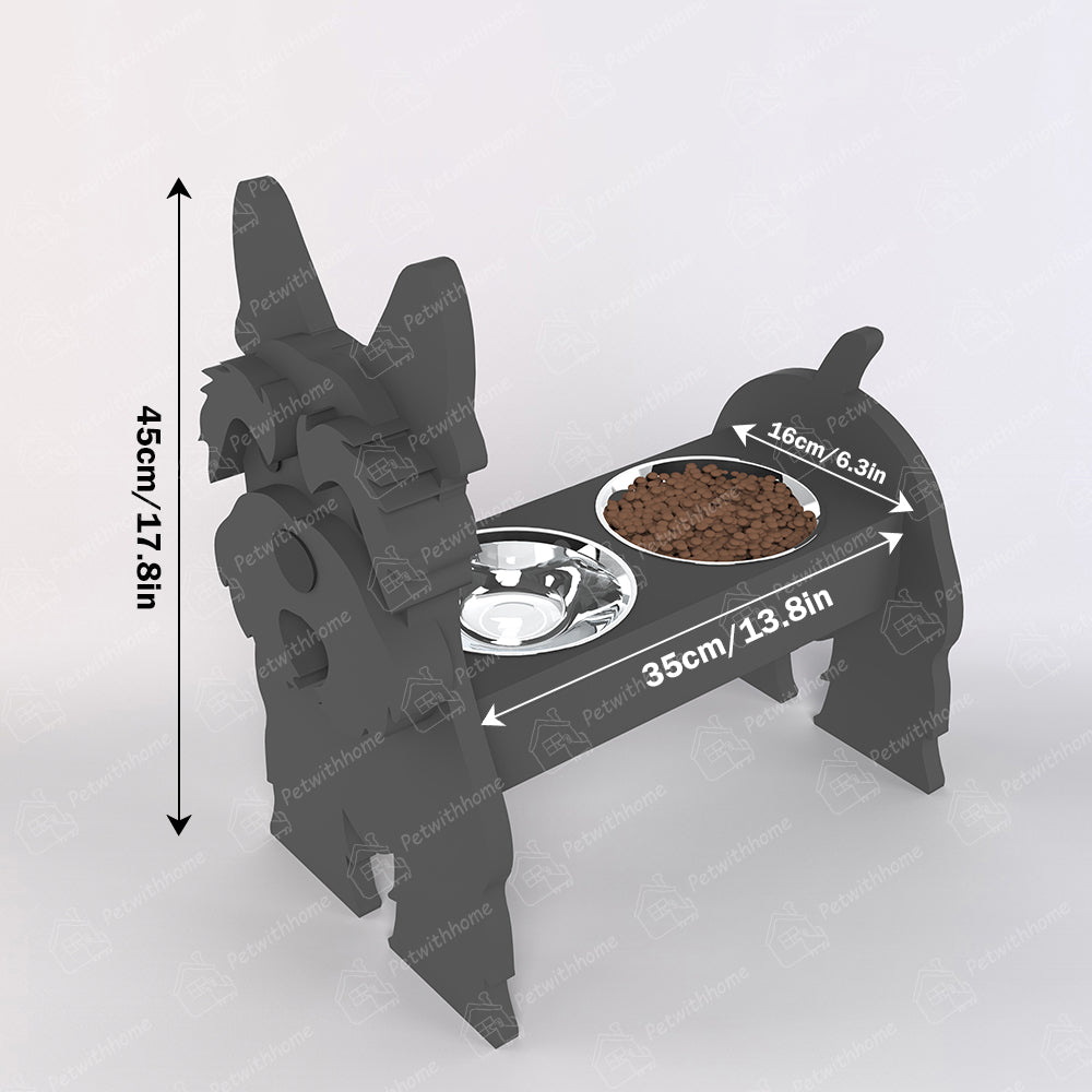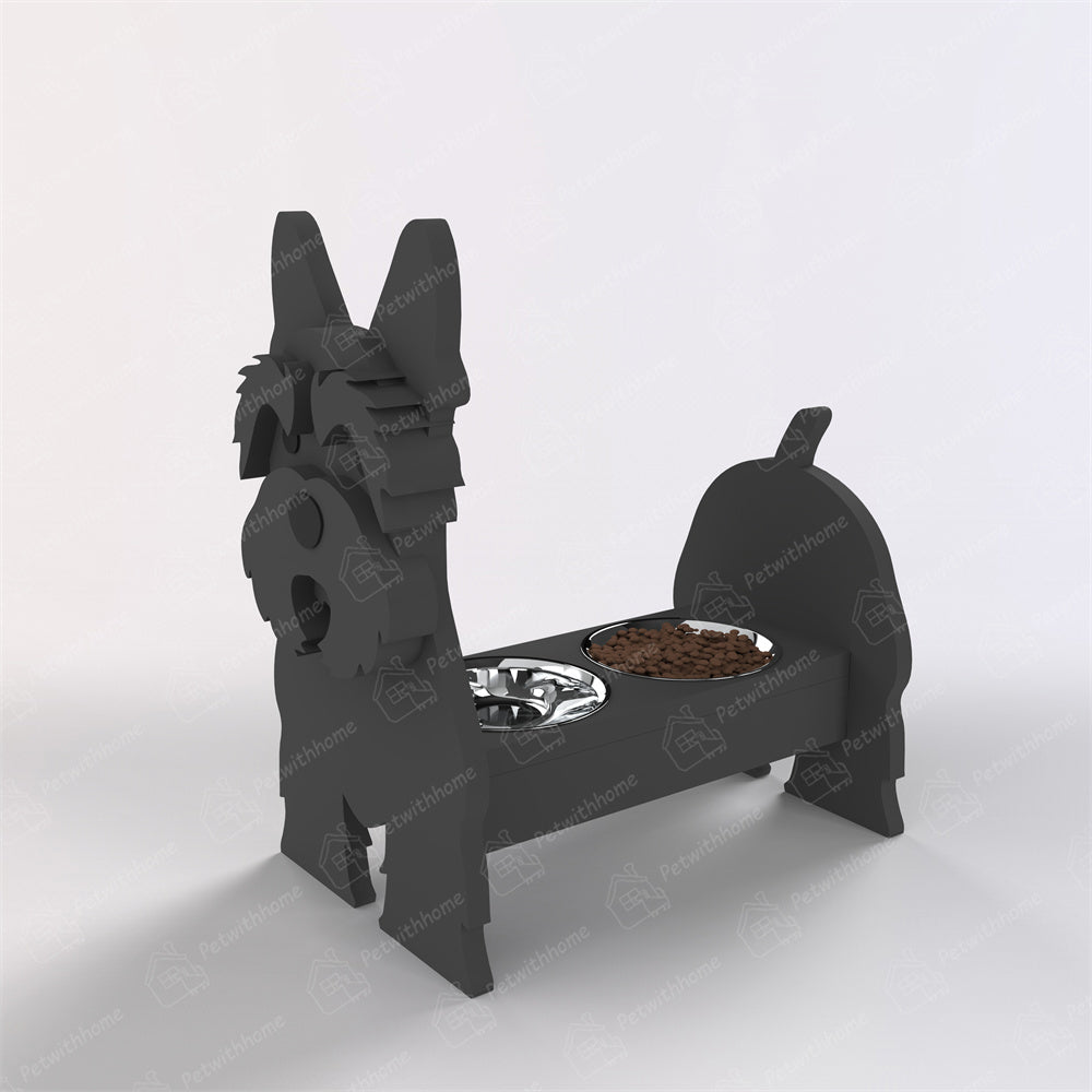 Introducing our charming and functional Pet Food Bowl Holder.Designed not only to make mealtime more comfortable for your furry friend but also to add a touch of whimsy to your home decor. This Pet Food Bowl Holder features a delightful dog silhouette, complete with expressive features that are sure to bring a smile to your face with each feeding.