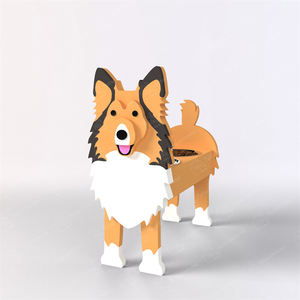 Shetland Sheep Dog Pet Food Bowl Holder
