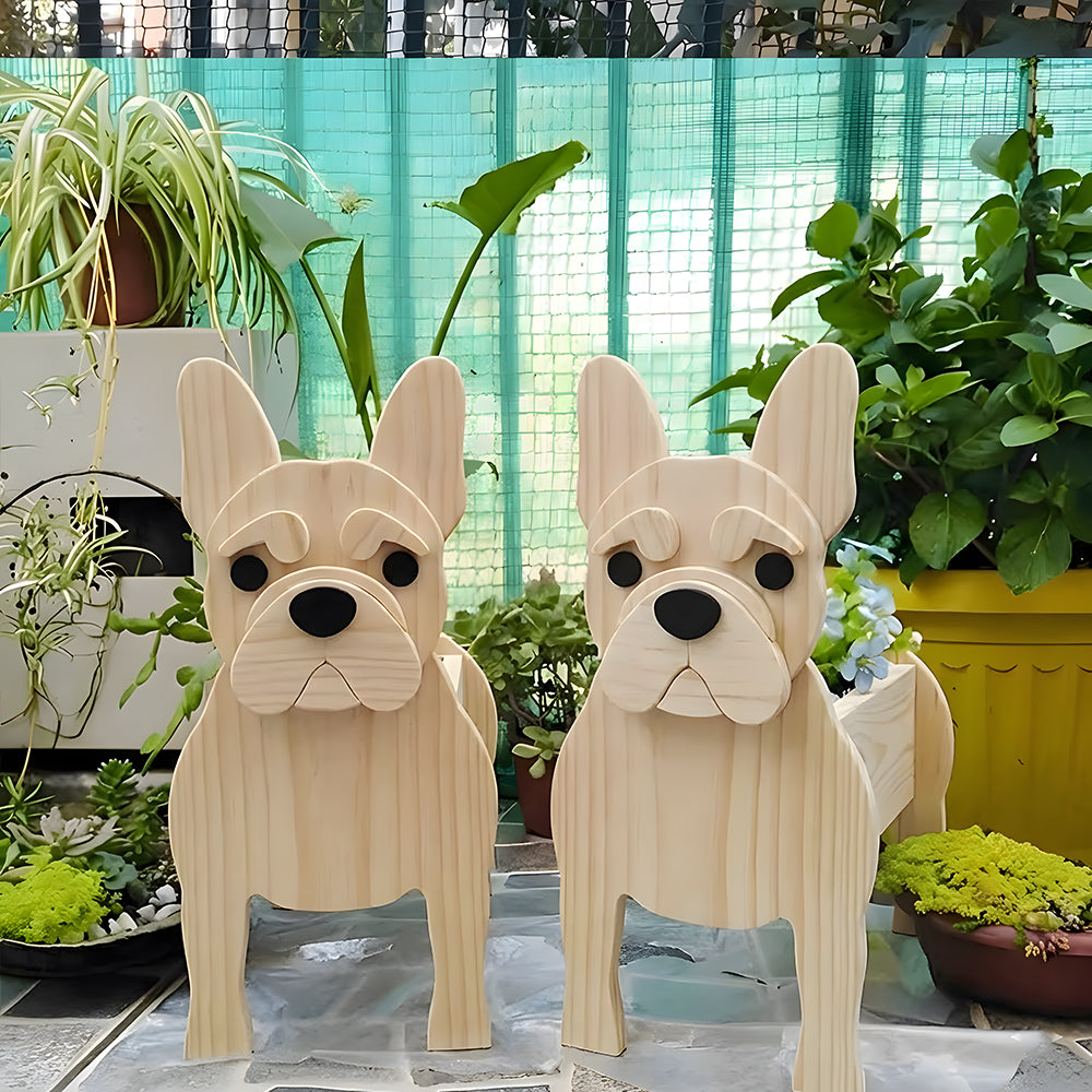 French Bulldog Wooden Flower Pot