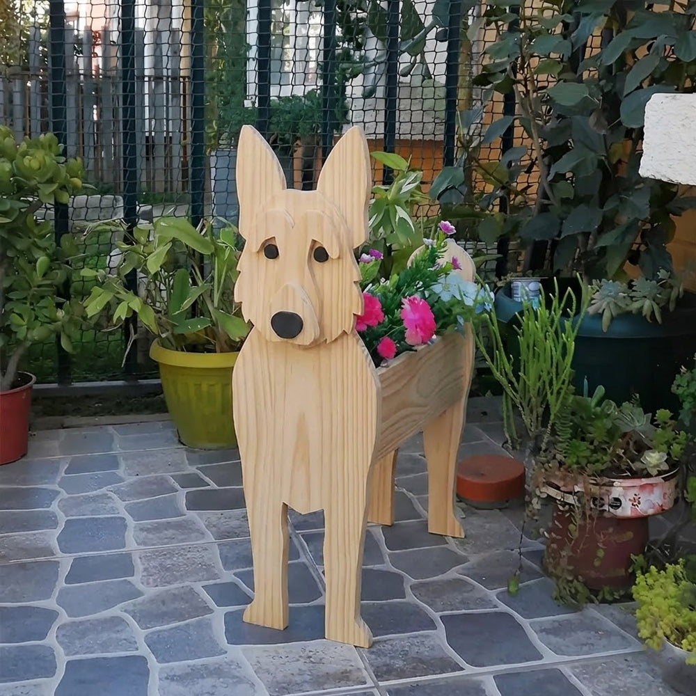 German Shepherd Wooden Flower Pot