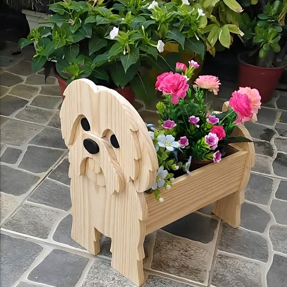 Shih Tzu Wooden Flower Pot