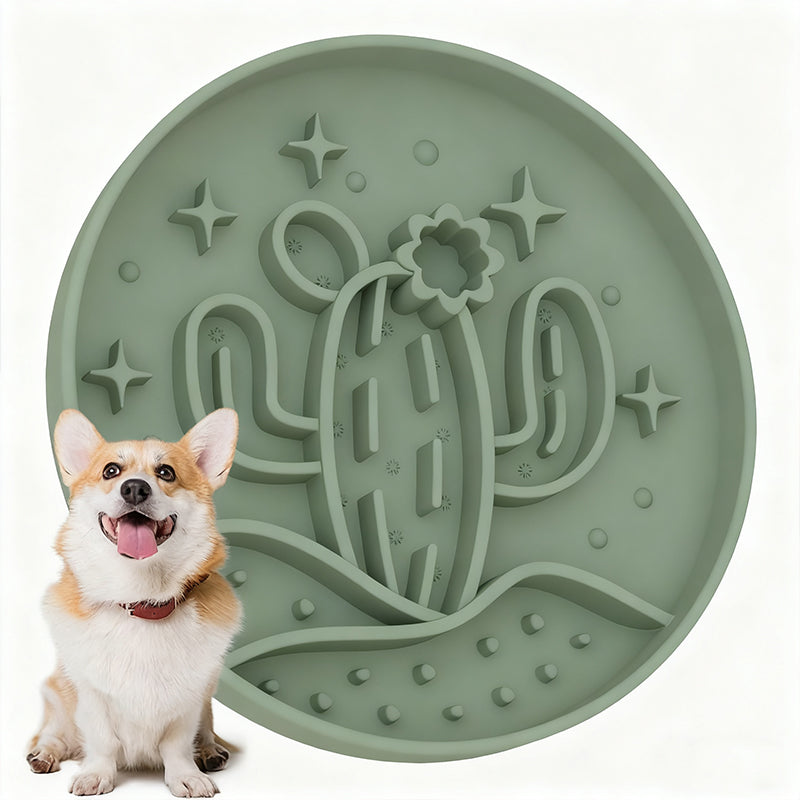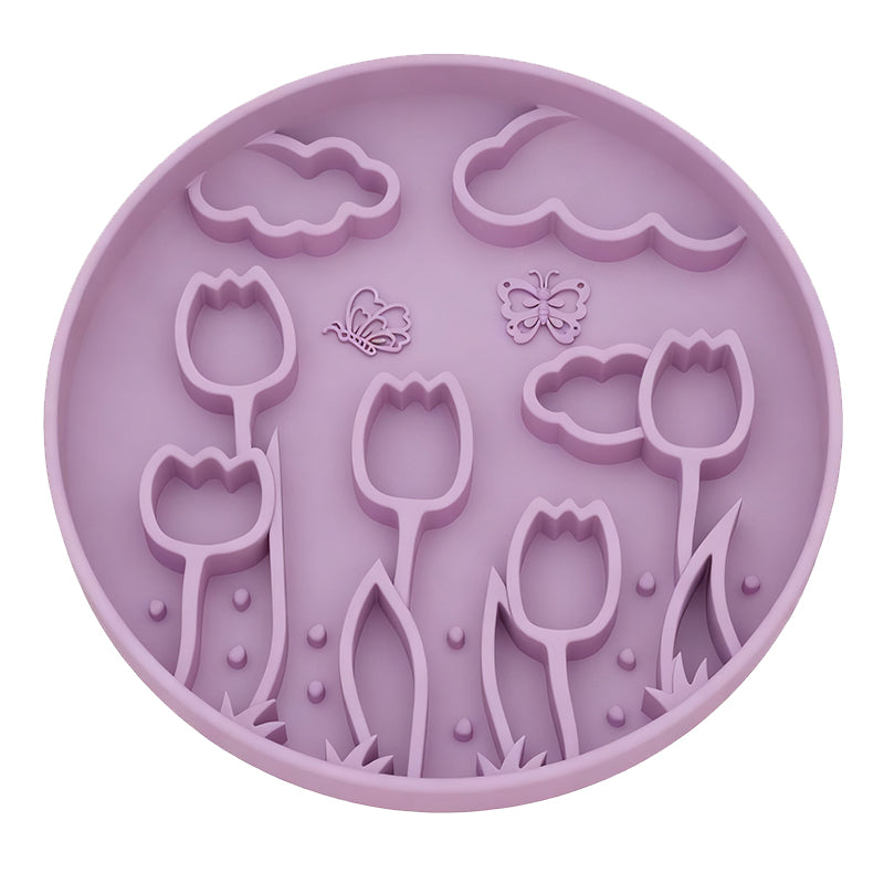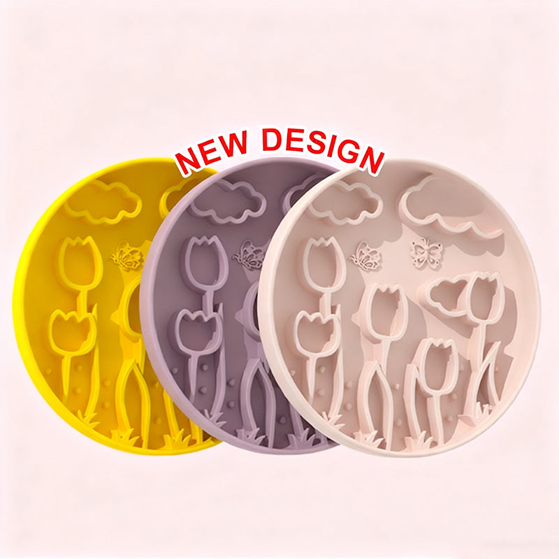 Flowers and Leaves Pet Smelling Lick Pad Silicone Slow Feeding Bowl