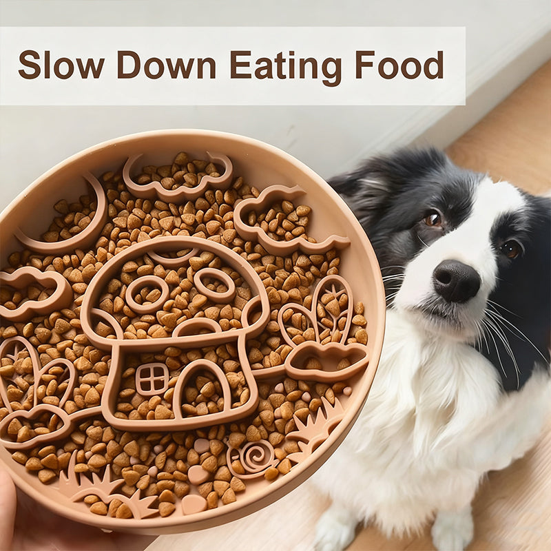 Mushroom House Silicone Pet Slow Feeding Bowl