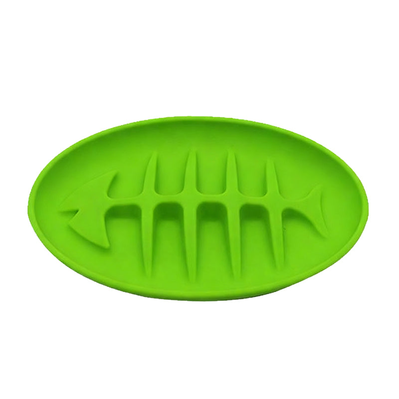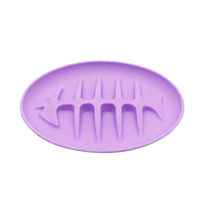 Fish Bones Pet Smelling Lick Pad Silicone Slow Feeding Bowl