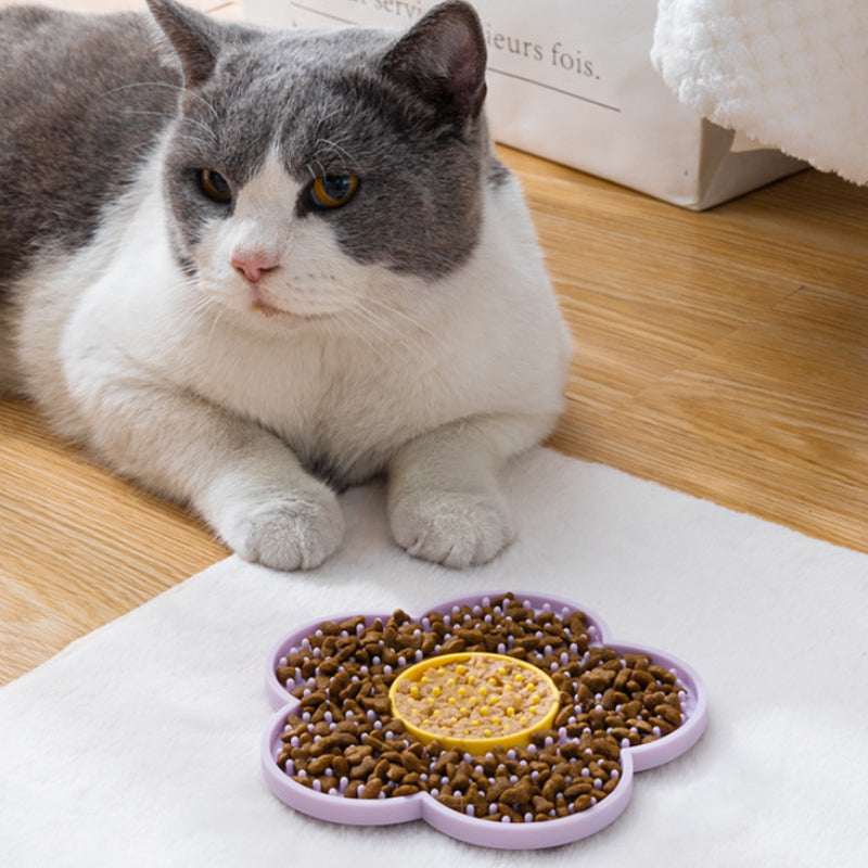 Flower Shaped Pet Smelling Lick Pad Silicone Slow Feeding Bowl