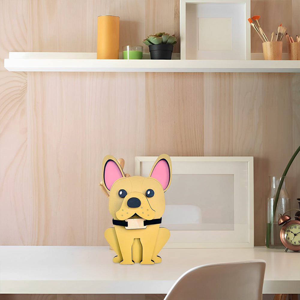 Wooden Cartoon Cute Bulldog Eyeglass Holder