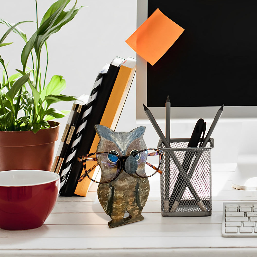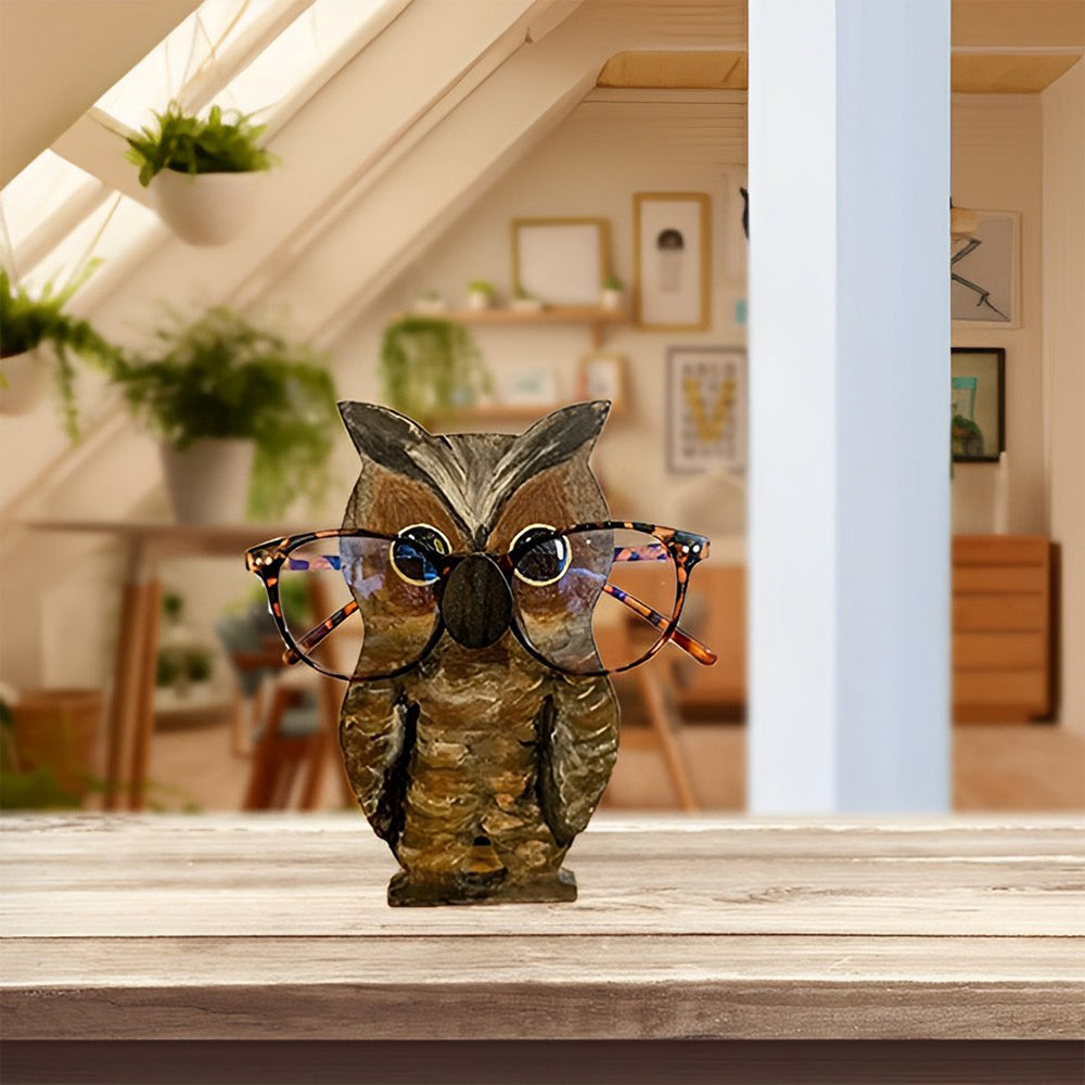 Wooden Cartoon Serious Owl Eyeglass Holder