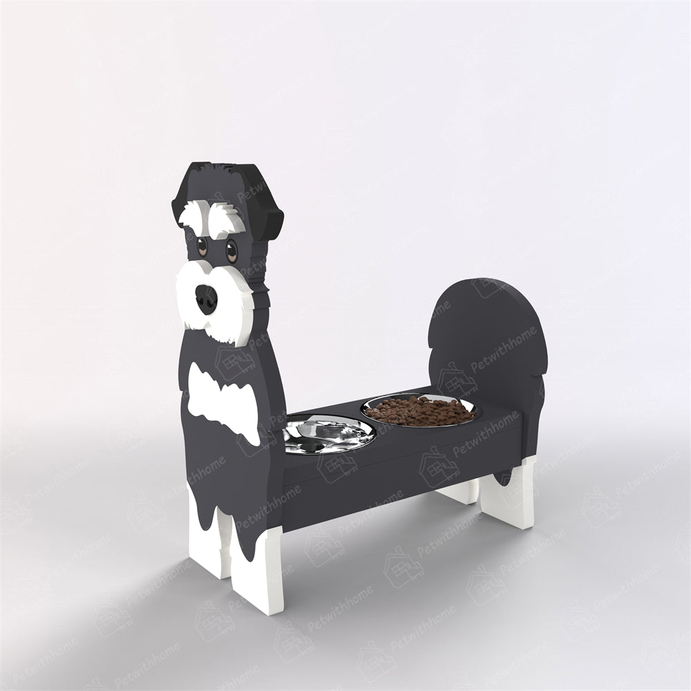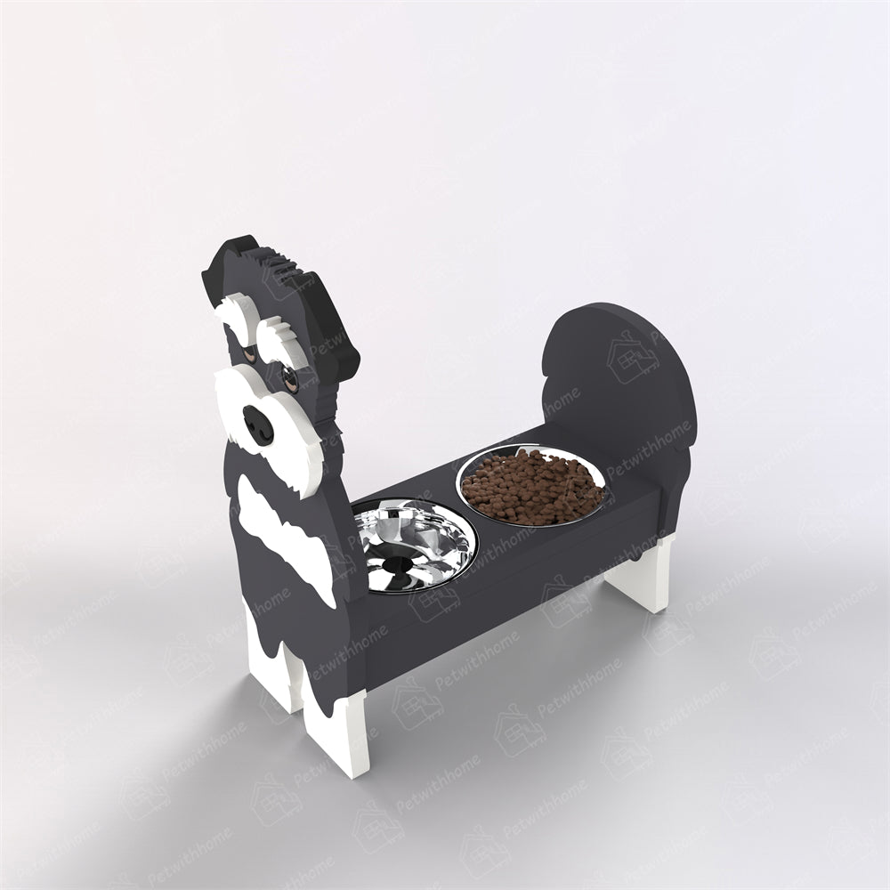 Introducing our charming and functional Pet Food Bowl Holder.Designed not only to make mealtime more comfortable for your furry friend but also to add a touch of whimsy to your home decor. This Pet Food Bowl Holder features a delightful dog silhouette, complete with expressive features that are sure to bring a smile to your face with each feeding.